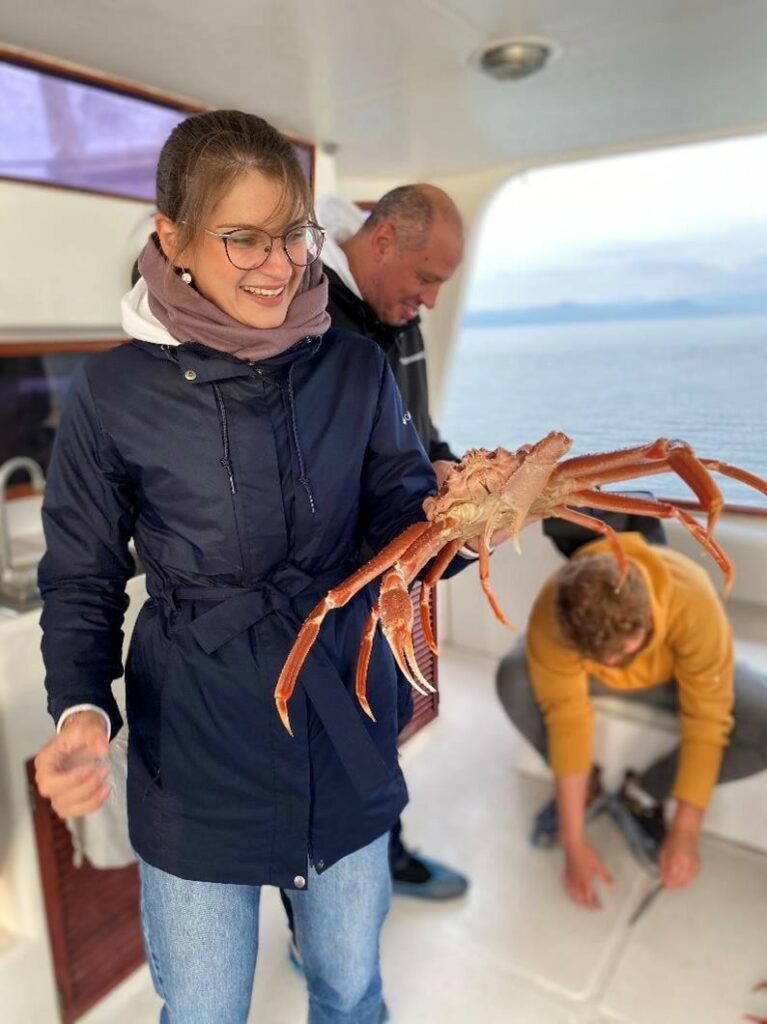 The next day, we sailed on a boat around the bay with a small exit to the ocean. We saw: “Three Brothers” guarding the bay, the devil with the middle finger, grandmother’s skull, a zoo of stone animals, a dead clown – this is the rich imagination of our sailor-guide, that’s how he presents stones and rock formations to tourists. A golden bird market on it has 15 species of birds, only locals know, and ornithologists identify dozens. Many “puffins” with red beaks. It turns out, if a bird flies along the water and cannot take off, then it is full. The sailor showed a master class in cutting crabs, those very tasty Kamchatka crabs. Juicy and very interesting in terms of flavor saturation. In a small bay, we stopped for fishing. Bait octopus, big hook, catching flounder. Cool, bites like herring in the Rostov region. Without a float, just lower the sinker to the bottom and jerk the rod and voila. We caught a lot and had juicy flounder for dinner.